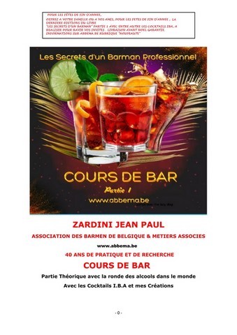 sur le site, à la rubtique " Nouveatés" la nouvelle parution de mon livre" les secrets d'un barman professionnel " nouvelle présentation , réalisé en deux parties , Partie 1 théorique de 110 pages et une Partie 2 technique et pratique de 154 pages . A bientôt.