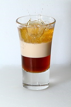 Verser doucement à l'aide du dos d'une cuillère les ingrédients en commençant par la liqueur de café, suivie de la crème de whisky (bailey's) et enfin la liqueur d'orange (grand marnier de préférence), afin de les superposer par 3 couches distinctes ! Faire en sorte que le cointreau soit à ras du bord afin de le faire flamber librement. Laissez flamber 1 minute, plantez votre paille et aspirez tout le contenu d'un trait.