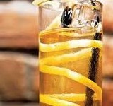 garniture : une longue spirale de zeste de citron déroulé dans le verre